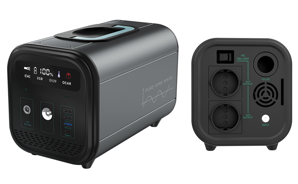 Onda sinusoidal pura. En el caso de dispositivos sensibles como ordenadores, el generador protege estos dispositivos con un inversor de onda sinusoidal pura para generar energía eléctrica estable. La salida puede alcanzar un pico de potencia máxima de 600 W.